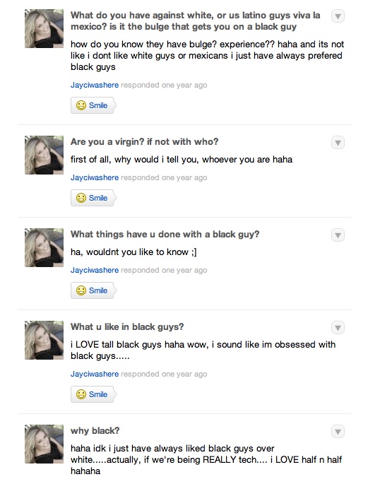Check out some of her Formspring messages before she disabled the account, she likes the Chocolate.