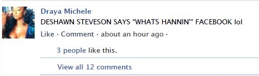 She also posted on Facebook as a status: “DESHAWN STEVENSON SAYS “WHATS HANNIN'” FACEBOOK lol”.