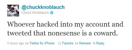In this particular case of Chuck Knoblauch it isn’t so clear. Just reading his previous tweets this sort of vile comment seems to come out of left field (no pun intended). Experience tells us that Twitter sometimes is a gateway to someone’s true feelings, so maybe this is how he feels about his ex-wife having relations with the black male population.