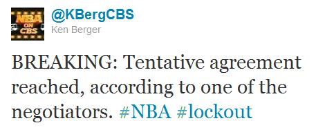 Nothing is set in stone, but numerous reports are coming out that after a marathon labor negotiation session that a tentative agreement has been reached between the players and the owners.