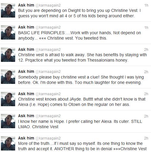 Unfortunately for Ms. Vest there are people whose goal appears to be to let her know she isn’t the only one.  Take this specifically created Twitter Account @karmaagain2 a whole page is dedicated to letting Ms. Vest know about Howard’s other children.