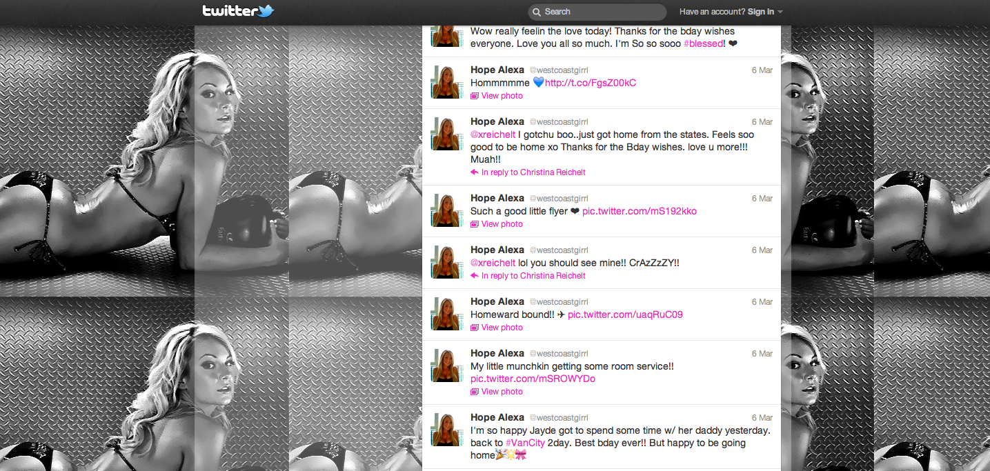 We attempted to reach out to Hope via her Twitter page @westcoastgirrl to see if she wanted to comment on the story and within 20 minutes she had deleted her entire page.