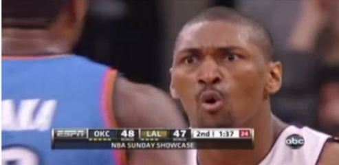 The question is about intent in regard to how many games Artest is suspended. I think it was intentional to get Harden off of him, I don’t think he realized exactly where Harden was in relation to his elbow.