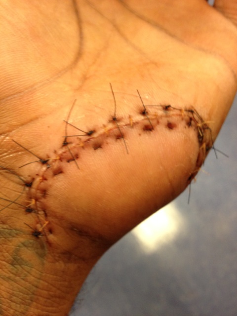 Amar’e Tweeted this out a little while ago and as you can see reports about half his hand getting sliced off were accurate.