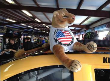 There were several “shake and bakes” circulating on race day and Busch’s passenger-side stuffed cougar made for an epic ‘Dega race!