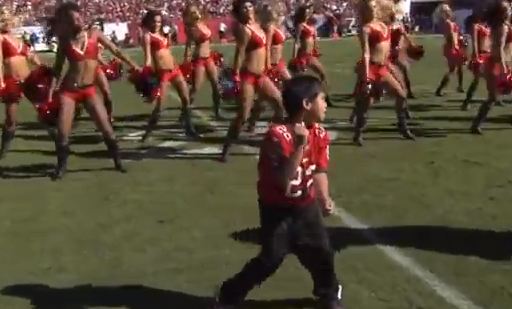 I know a few people were saying that the kid shouldn’t be dancing with the cheerleaders because he is a boy. Ease up, he is just a little kid having fun.