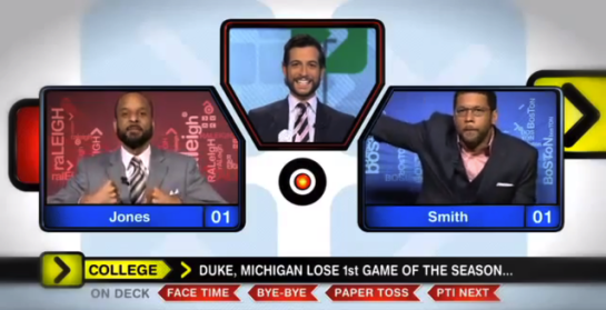 As soon as the clock expired, Michael Smith started yelling “Boston ball!” Did Smith deserve the win against Bomani Jones on ESPN’s Around the Horn? No, but it was clear Smith was committed to this win and Tony had no choice but to hand it to him. Thank you, because what happened next was the funniest moment of the show.