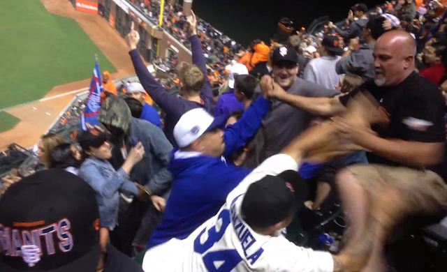 Lately though it seems the two fan bases have ratcheted it up the volatility. According to the Big Lead, punches and bottles were thrown during a brawl between fans from both teams Saturday night in the stands at AT&T Park,