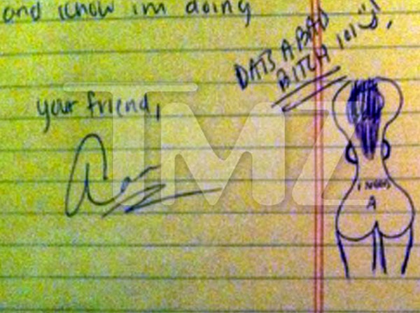 He writes these long letters to people (beautiful penmanship, by the way) and they just sell them to TMZ for a quick buck. I am seriously considering writing Hernandez, so I can do the same thing.