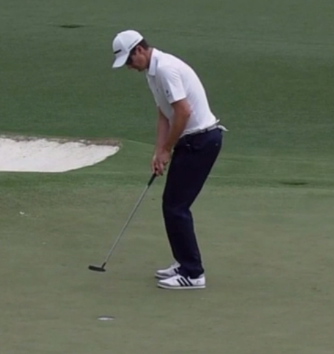 Justin Rose did a hula-hoop dance after knocking in the par-4 seventh during the final round of the Masters. Rose was inches from having the drive of the tournament.