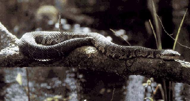 A bite from a cottonmouth can be deadly with its venom causing massive swelling.