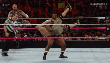 Our finish sees total chaos erupte and Xavier Woods sneaking in to roll up D-Von for the win. After the match the Dudleyz and Cena beat New Day down, ending in Woods eating an Attitude Adjustment and then continuing his weekly tradition of going through a table.