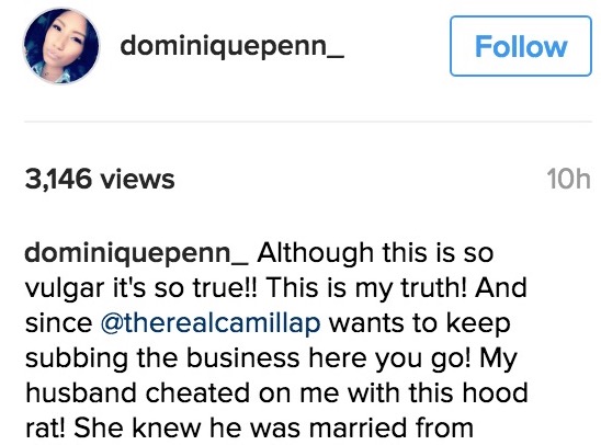 But, the strange part is Dominique doesn’t seem that upset with her husband for cheating and going raw with his side chick. She is much more upset with Camilla from the tone of her IG Post.