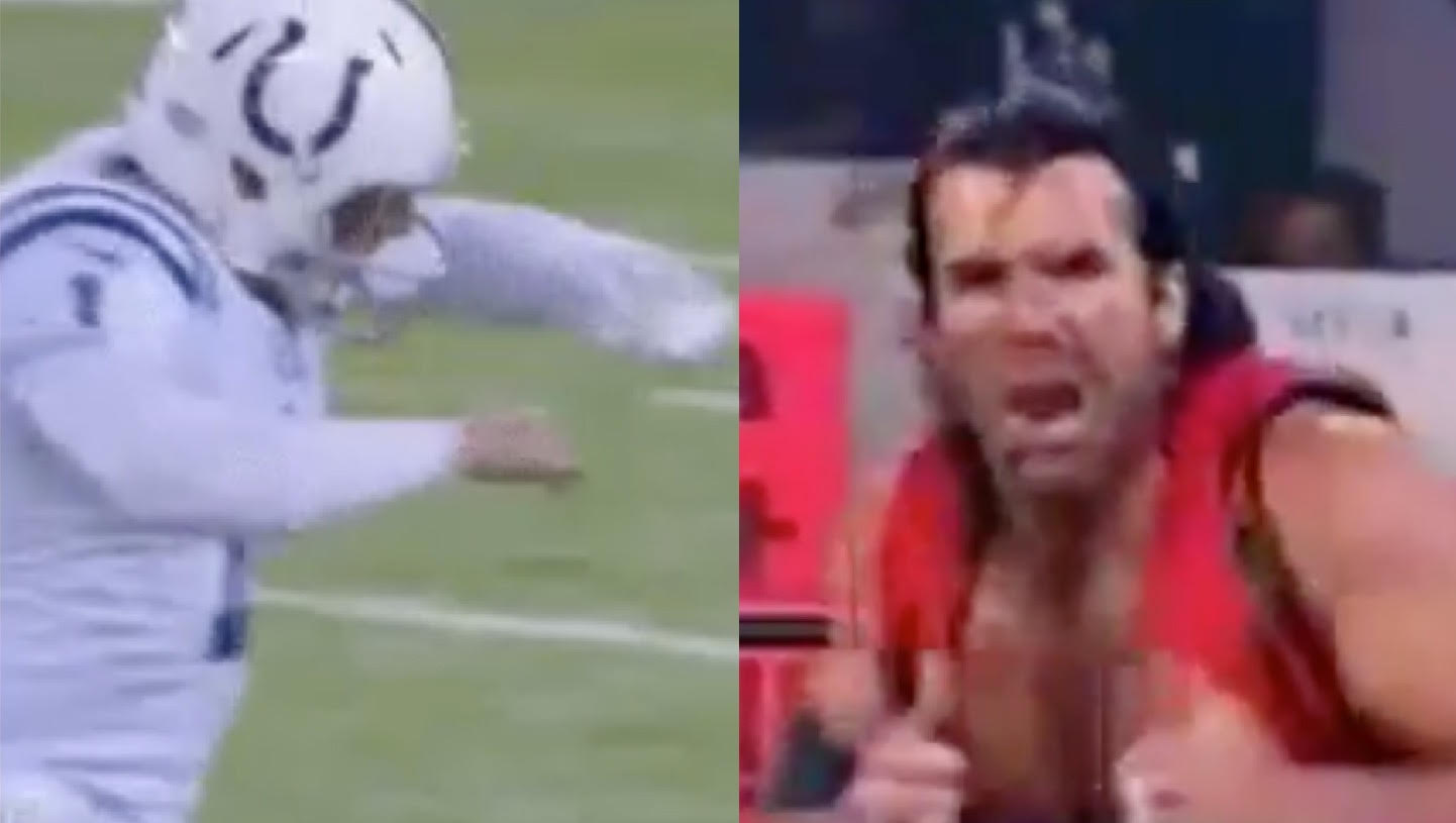 In addition to laying down the smackdown, Colts Pat McAfee held nothing back as he pulled off his Razor Ramon stomps once he laid down a perfect punt.