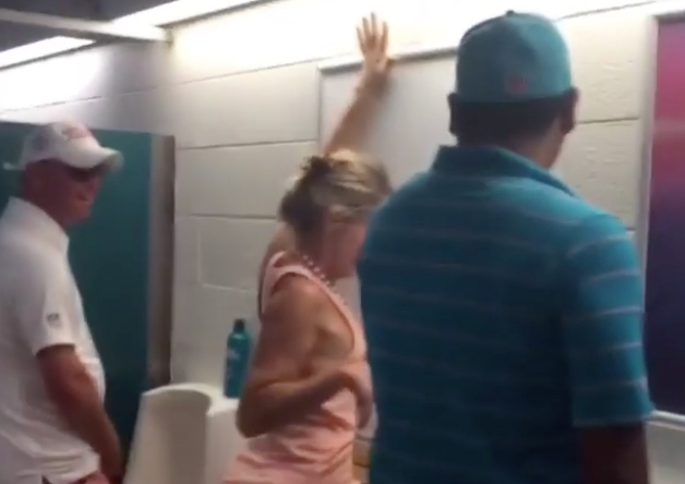 Most women pop a squat when they need to use the restroom in an unknown location when you have no options. However, this Dolphins’ fan went inside of the men’s bathroom and decided to use the urinal instead. Thank god for video.