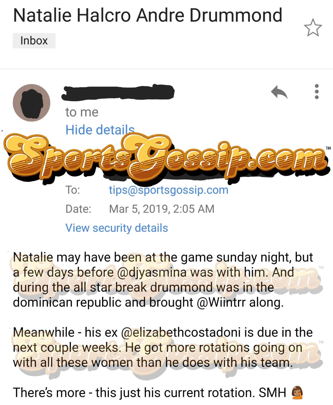 Drummond allegedly had international DJ, Yasmina, show up to a game a few days before Natalie did. But that’s not all, our source also claims he spent time with singer Winter Blanco in the Dominican Republic during the All-Star break. He’s apparently also been seen recently in both Yasmina’s and Winter’s Instagram stories.