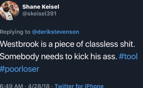 Flip the pages for Westbrook going off on him, Patterson & Westbrook explaining what happened and Keisel lying. We also have a ton of tweets from Keisel being racist.