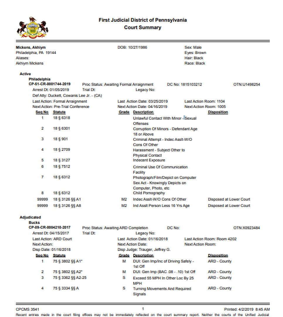 According to XXL, 9 is facing charges of sex crimes and child pornography. Documents obtain from the First Judicial District of Philadelphia court state that he was arrested on January 5 for unlawful sexual contact with a minor, corruption of minors, criminal indecent assault, physical harassment, indecent exposure, criminal use of communication facility, photograph/film/depict on computer sex act—knowingly depicts on computer, photo and child pornography.