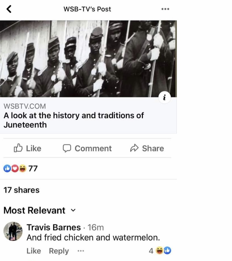 Travis Barnes VP of Pro Customs Body Shop Covington, GA decided to make a racist Juneteenth joke about chicken and watermelons.