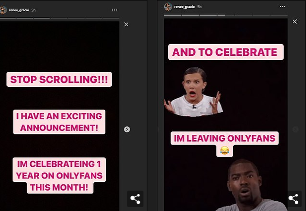 She announced the news on her Instagram a few days ago, citing too many commissions being paid, and other reasons to explain her departure from the popular site that mostly hosts adult content.