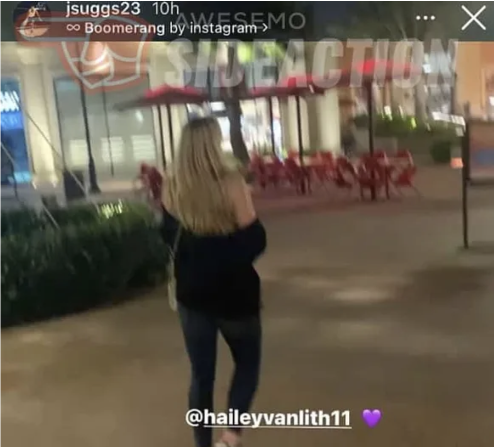 Suggs uploaded a pic with him walking behind her and tagged her in the pic with a heart next to her name.