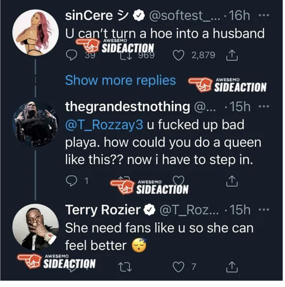 Rozier was asked how he could do her like this and he said that she needed fans like the commenter so she can feel better.