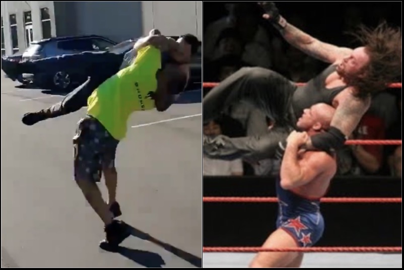 He is lucky he didn’t land on his head when he was getting suplexed multiple times by a cashier.