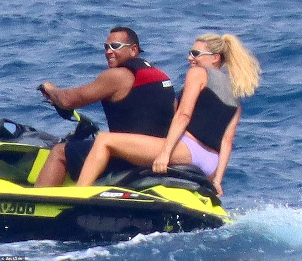 Alex Rodriguez who turned 46 today, was seen jet-skiing in St. Tropez with his NFL sideline report friend Melanie Collins and former NFL WR and his wife Eric and Jesse James Decker. Little did A-Rod know that his former flame Jennifer Lopez was on a massive yacht with on-again boyfriend Ben Affleck. They were just getting ready to leave the island when A-Rod and friends were spotted near their yacht.