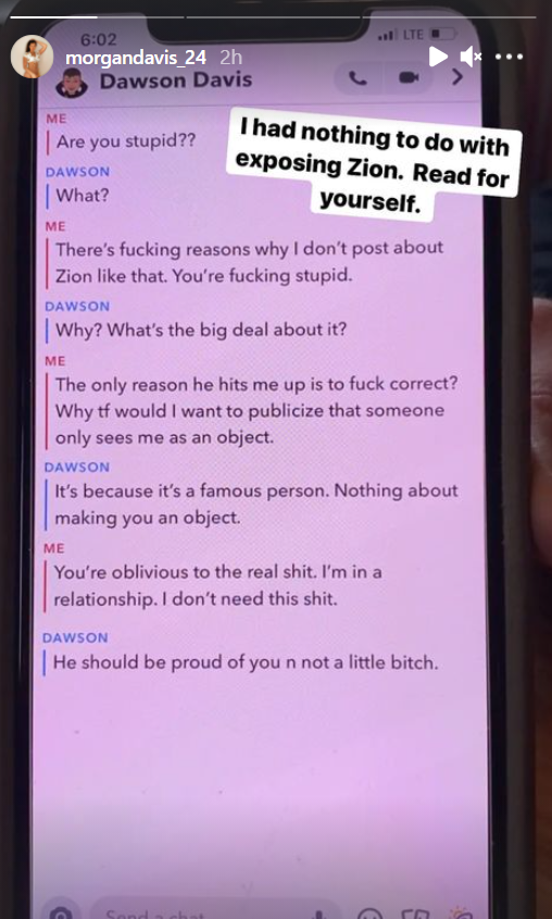 BSO reported on Only Fans model Morgan Davis exposing that Zion Williamson was on her Snapchat trying to “link up”.