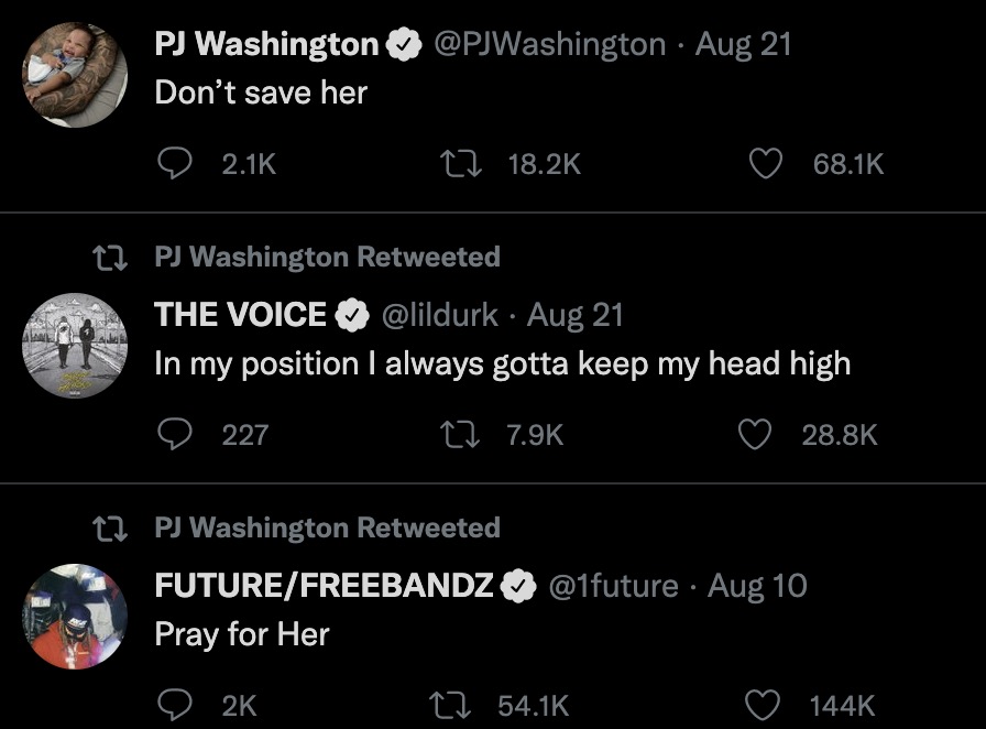 Flip the page to see and PJ Washington chiming in saying don’t save her and pray for her.