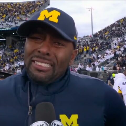 Johnson, who was dressed in bright blue pants to support the Rams, put her hand out and tearfully accepted Rapp’s proposal. The two then embraced as viewers cried out in love.