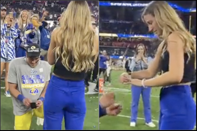 After winning a Super Bowl 2022 ring, the Los Angeles Rams safety pulled out a ring of his own, proposing to his girlfriend Dani Johnson right on the field of the SoFi stadium in front of a crowd of cheering fans.