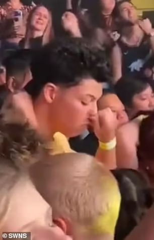 In a clip filmed by a fellow concert goer, the social media influencer can be seen among the crowd, tilting his head back and inhaling while someone holds something up to his nose.