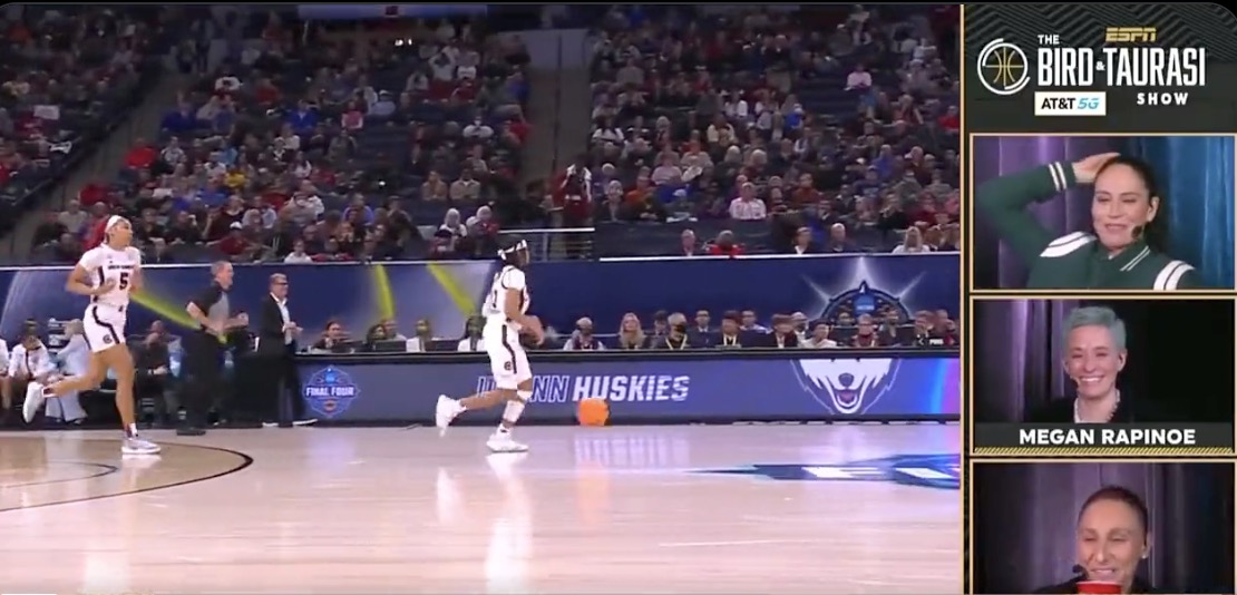 ESPN broadcast an alternate telecast for the Women’s Final Four, think about it being like a Manning Monday Night Football type telecast. Diana Taurasi was really great, she teamed up with Sue Bird for the broadcast and she couldn’t help herself from making “Cock” jokes.