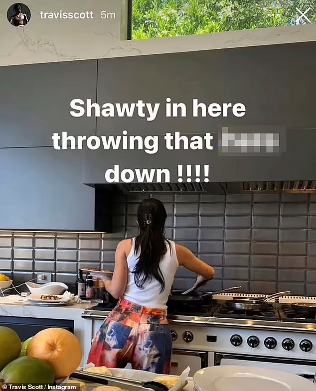 Travis Scott is appreciating his baby momma Kylie Jenner for cooking for him on Father’s Day. Travis posted a picture of Kylie in his kitchen cooking on his Instagram Story with the caption;