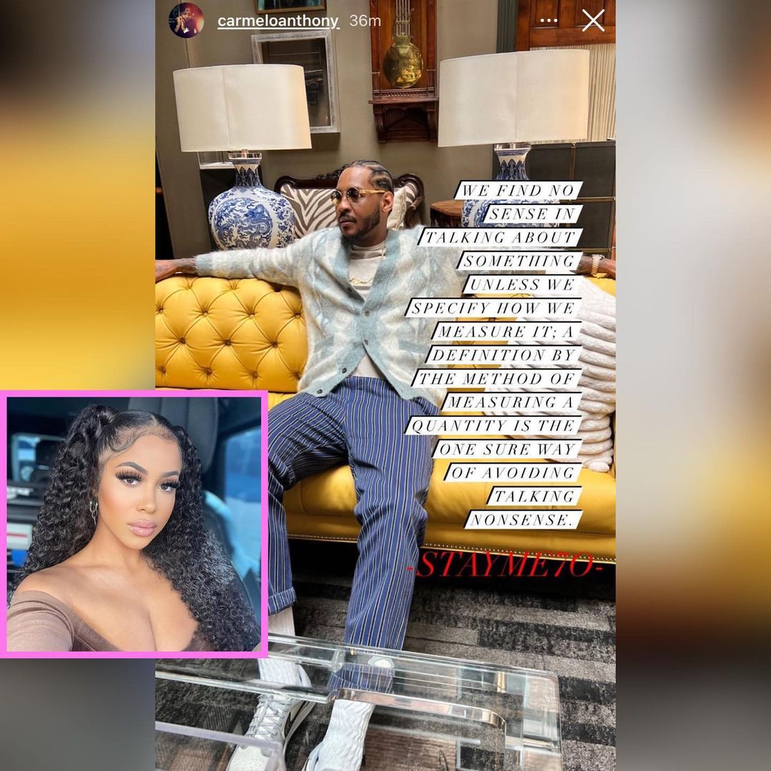 Carmelo Anthony has seemingly responded with a cryptic message following Yazmine Lopez’s more recent comments about their relationship.