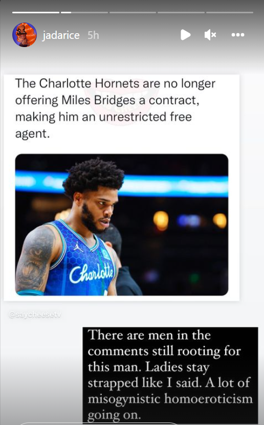Flip to the next page to see Jada Rice’s posts blasting men who’re supporting Miles Bridges…