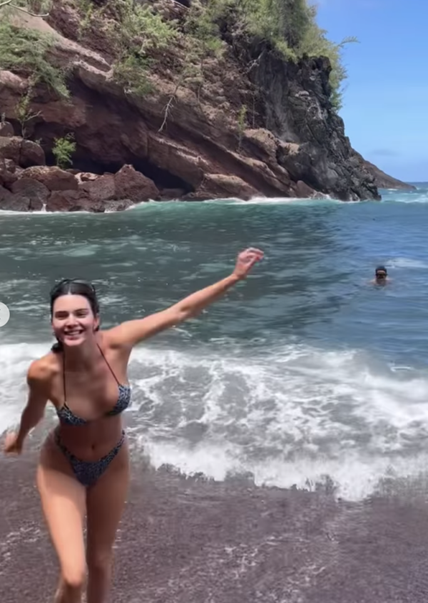 In a carousel of vacation photos and videos she posted yesterday, Jenner shared a clip of her stepping out of the ocean with her maybe-ex-boyfriend Devin Booker following behind her, Page Sixpointed out. This isn’t the first time the former couple has been spotted hanging out since news of their breakup broke last month. The two were also seen together at Malibu’s Soho house and at a Hamptons liquor store.