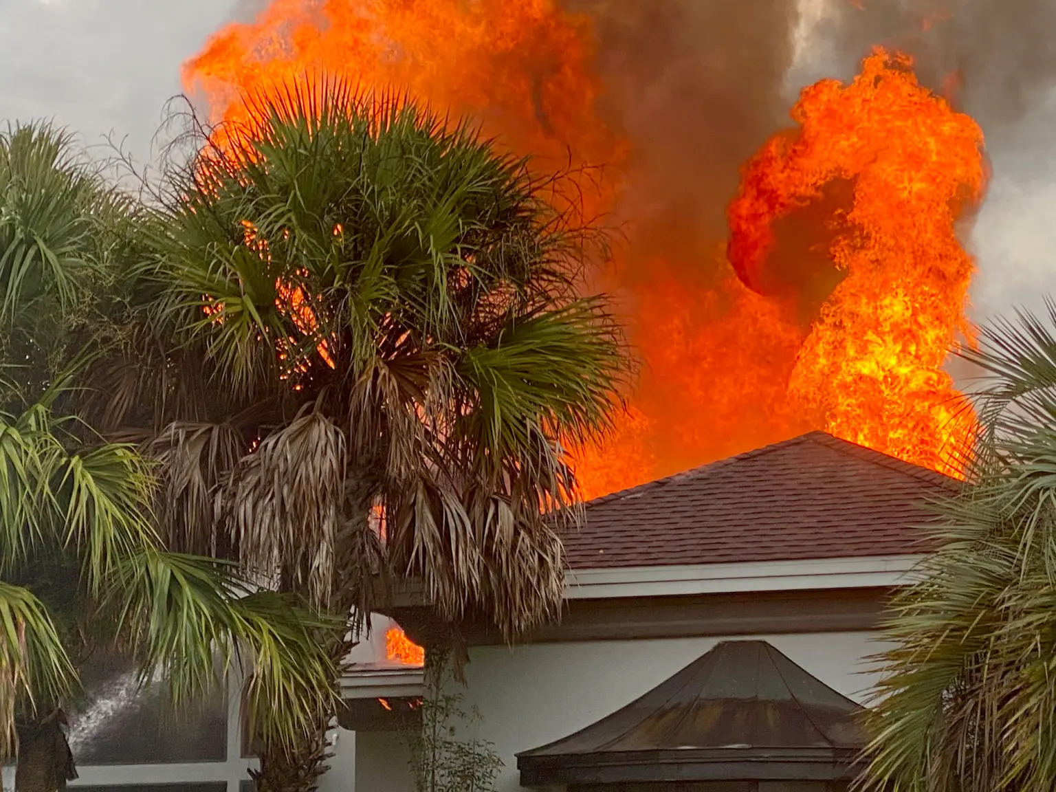 Plants and vegetation on the property reportedly made extinguishing the fire more difficult.