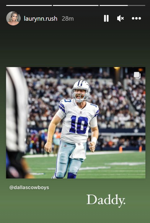 Cowboys QB Cooper Rush’s wife Lauryn Rush couldn’t control herself but celebrate his big victory over the Bengals. She posted a photo of her husband in action on her Instagram Story with the caption; “Daddy.”