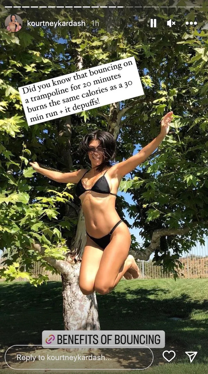 Kourtney advised her followers that jumping on a trampoline was not only fun but it was also great exercise.