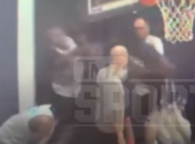Green and Poole clearly have beef … you see them trash-talking each other, and then it turns physical. Green walks up to Poole and gets in his face. Poole pushes Green away with 2 hands to the chest. Green, who is 6’6″ and 230 lbs, responds with a vicious right cross to the face … so ferocious, it knocks Poole to the ground and it may have knocked him out cold.