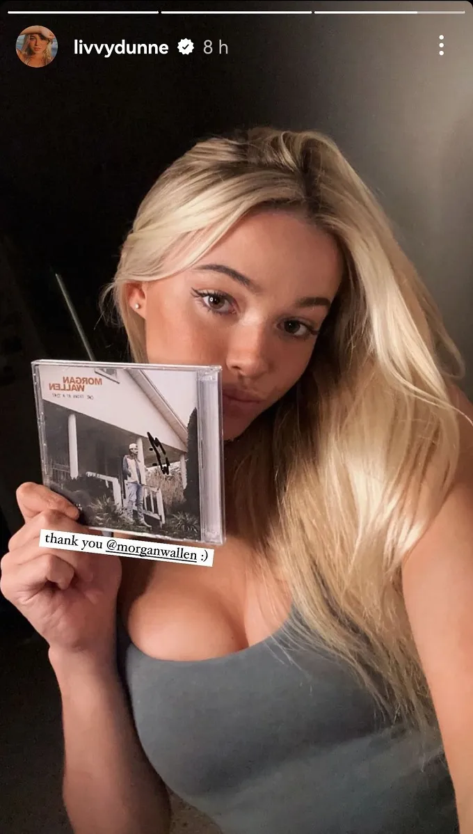 The blonde bombshell shared a recent Instagram Story in which she was seen taking a selfie and holding up an album from country singer Morgan Wallen.