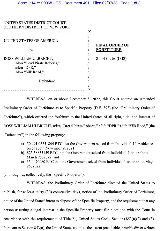 And DailyMail.com can reveal the US government is now in the process of offloading the stolen gains after a judge told the US Marshals Service to liquidate the crypto currency.
