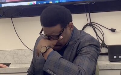 She layered up the look with an oversized black blazer and she slipped her feet into a pair of black patent leather Christian Louboutin heels.