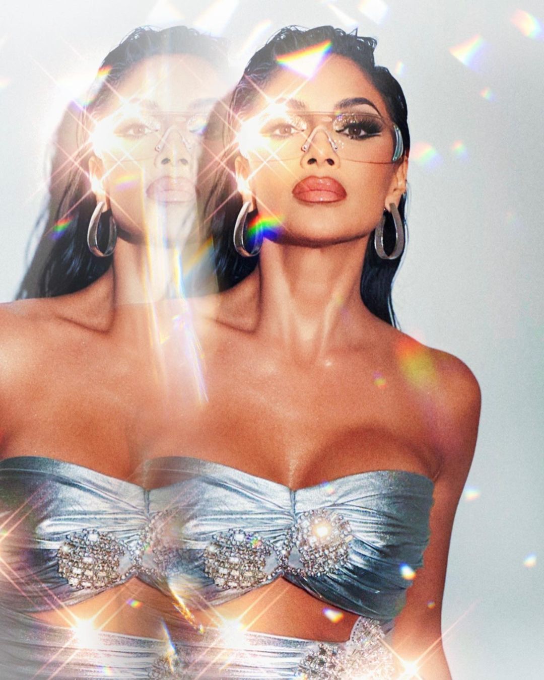 And Nicole Scherzinger was once again flaunting her best assets as she took to social media on Wednesday to share a clip and a slew of snaps of her outfit for Space Week on The Masked Singer, on which she is a judge.
