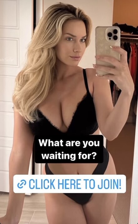 It appears Paige Spiranac‘s Instagram followers are not joining her Onlyfans account as much as she presumed, so she took to Instagram to showcase her massive boobs while rocking black lingerie only to show folks what they are missing and further asked them to join her platform for £7.80 a month or £78 a year subscription.