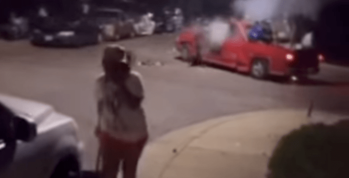 A video clip recently surfaced of a man approaching a pick-up truck occupied by an individual in the middle of the street before casually tossing a firework inside. Instead of immediately jumping out of the truck, the driver reacted by closing his door. Thus, locking himself inside seconds before a devastating explosion went off. The visual sent shockwaves throughout the area as bystanders could be heard screaming during the on-camera ordeal. Information about whether or not the driver survived the explosion/sustained serious injuries is scarce.