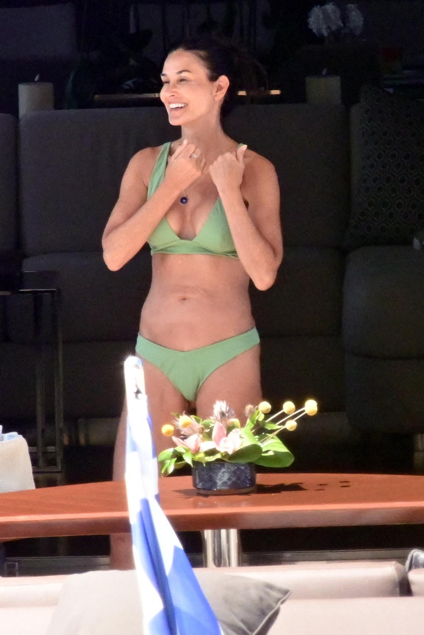 Demi Moore is 60 years old and that didn’t stop her from showing off her body in a tiny green bikini while having fun on a yacht in Greece. Showing off one’s body doesn’t come with age as you can see Demi is freely showing off in grand style without fear of being body-shamed on the internet. It’s obvious she is proud of her body and wants y’all to know.