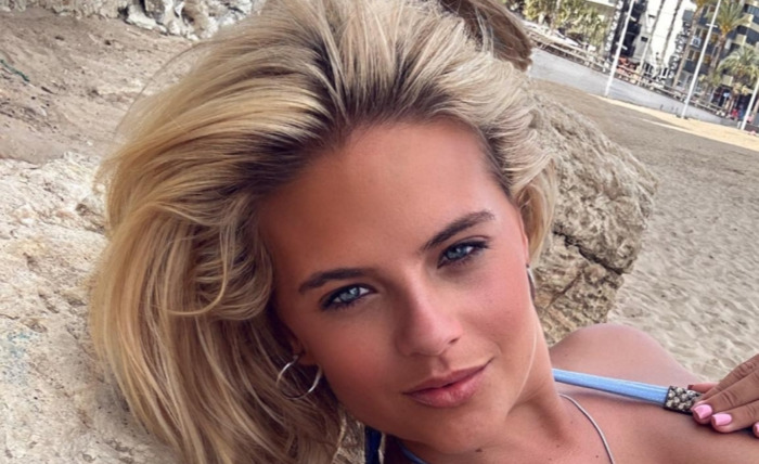 Temperatures are soaring on Instagram after ring girl Apollonia Llewellyn dropped thirst trap photos showing off her massive cleavage in a tiny bikini while having a great time in Greece, Santorini. She posed with her breakfast served in front of her with a mini-pool behind her and with the caption;